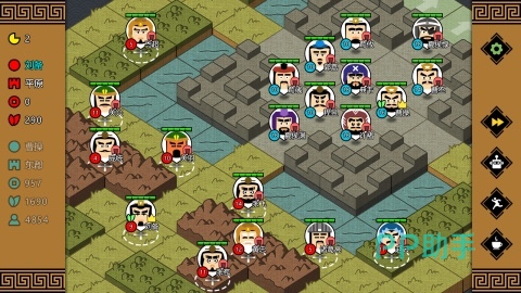 游戏中画风非常简洁,没有华丽的建模,属于一款轻度操作的游戏。战场中有不同的地形,搭配上玩家的不同策略,能够为战斗起到加成的效果。二十余种不同个性的武将让游戏中的战术非常的灵活,玩家可以根据自己爱好的作战方式来决定让哪个武将出战,在游戏中还可以结婚生子,有这样的养成系统。除此之外,游戏中自由度非常高,玩家可以自由修改游戏的地图,还可以选择不同的势力来取得胜利。
