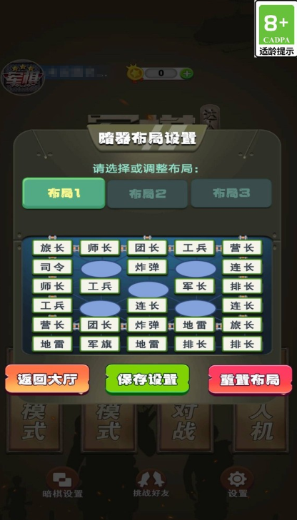 这款手游用的是大家都熟悉的军旗玩法,玩起来特别锻炼思维,不用连网也能随时玩,整体的设计都很贴合经典玩法。玩家进入游戏后,能和对手一起摆阵布防,调整自己的棋子位置,来一场实打实的对战,最后决出胜负。游戏还有自动保存功能,能记下上一次的摆阵方式,下次对战的时候直接用,不用重新布置,玩起来更顺手。