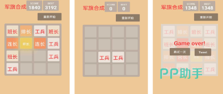 玩家进入游戏后会来到四乘四的方格对战区域,这里每一步行动都要提前想好策略,应对接连出现的挑战。玩家可以移动格子里的棋子,把相同的棋子合在一起,让原本等级低的棋子变成等级高的,跟着棋子的变化,能一步步体验从普通士兵慢慢升到将军的过程。这样的棋子合成玩法,能让玩家在提升棋子等级的过程中感受到满满的成就感。