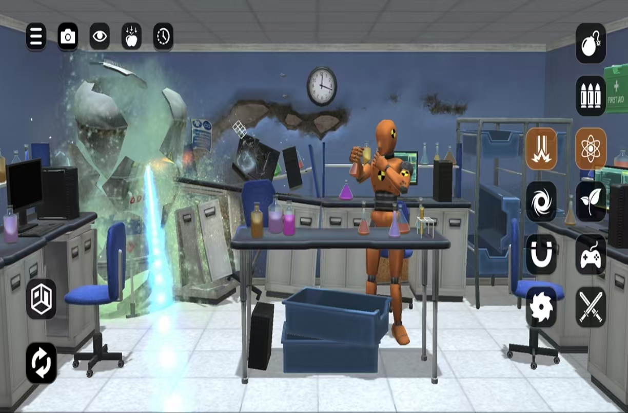 《房间破坏模拟器》可以主打一个自由进行破坏,或者是跟随任务的要求,能够看到厨房,餐厅,酒吧等众多场景。点击屏幕的方式就可以破坏掉,提供了很多丰富的枪械,还有手榴弹,燃烧瓶等,在破坏时会出现一定的特效。视觉上有着超强的体验,不断的能够解锁更多新房间,拥有更多强大的武器,模拟了真实的破坏和碰撞过程。