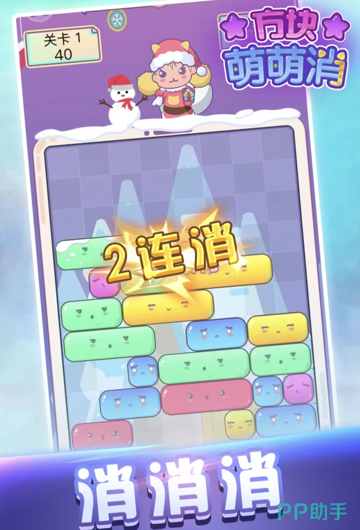 《方块消消消》采用了非常细腻简约的游戏设计,通过不断的消除体验更多的难度,通过点击消除时会有清脆的音效,前期的挑战会更加容易轻松。后面的关卡方块种类会更多,会出现更多不同的方块颜色,只有相同颜色的方块才可以消除。提供的布局模式是很丰富的,尝试每一种模式下不同的挑战性,要跟随着目标要求不断过关。