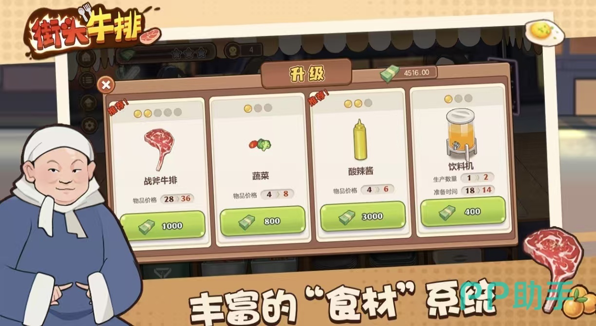 《街头牛排》在这里成为街头的摊贩,要通过烹饪美食售卖牛排,招揽更多的顾客前来购买,通过不断晋升解锁更多的食材。这里还有着竞技对战的玩法,社区内玩家们可以交流互动,提供的牛排有不同的配料。客人们会有不同的要求,他们的等待时间是有限的,要有条不紊的合理制作和售卖。烹饪的工具也可以进行升级,从而可以提高烹饪的时间。