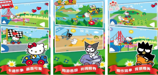 趣味性十足的玩法,还主打的就是赛车的元素所设计,其中有欧是一个精美的三丽鸥角色,比如有凯蒂猫或者是美乐蒂等等,这些人物角色从外观上来看,都有独特的特点,还有不同的交通工具,任由大家随意驾驶,就比如有小船或者是飞机等等,大家需要展现出自己卓越的驾驶技巧和极高的反应能力,在规定的时间之内顺利到达终点,就能顺利通关。