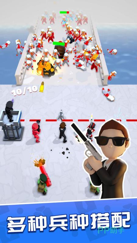 游戏是比较精彩的,大家可以利用金币来招募到更多的士兵,然后玩家能够在游戏里面感受到射击的乐趣,会有很多的武器,然后大家都是可以利用起来的,同时在游戏里面的地图场景也比较的丰富,大家可以进行各种兵种的随意搭配,点击屏幕就可以直接让英雄进行射击了。