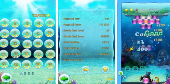 在海底世界当中完成泡泡龙消除,其核心特色就是构造出独特的深海场景,由多种颜色泡泡构造而成,将三个或者以上相同颜色小球排列到一起,就能够消除,游戏中有200多个关卡,随着关卡难度逐步递增,通过解锁更多方式来推动进度这样的特色设计,确保游戏具有极高的挑战性以及持续可玩性。
