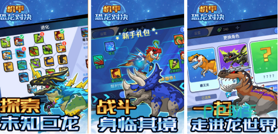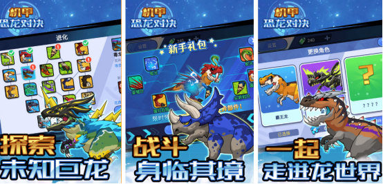 以对决为题材的热门游戏,融合了恐龙和机甲元素,享受特别回合养成机制,科幻机甲与史前恐龙属于截然不同的元素组合,最终创造出独一无二的视觉风格,以及独特的世界观。玩家通过收集dna碎片对恐龙进行进化,解锁新技能与改造部位。自由合理搭配技能,最终实现个性化战力培养,游戏还设有王者挑战以及斗兽场等不同的副本内容。
