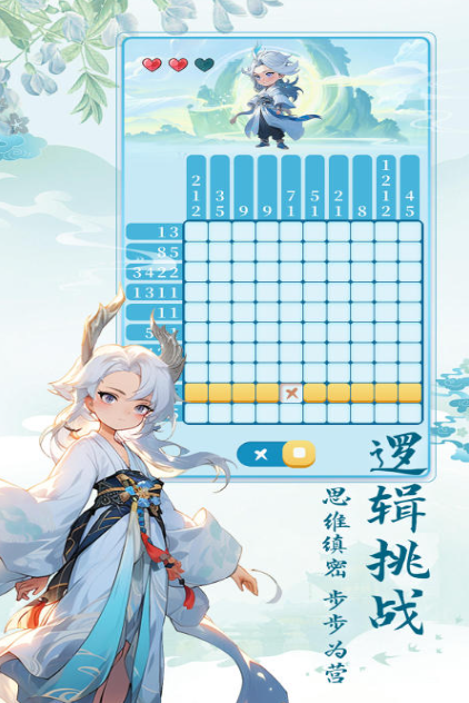 游戏为你塑造了许多数字涂色关卡,你要按数字的排布来填色,譬如整个表格为5x5时,横向纵向的数字为5,就表示五个格子都要填满颜色,而横向纵向的数字为13,就是先涂色一格再空一格而后涂色三格,以此类推,这无疑能锻炼你的逻辑思维能力。游戏还准备了拼图玩法,来满足不同玩家的喜好。