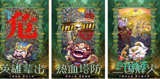 三国题材为特色的肉鸽塔防游戏,采用非常出色的q版三国为背景,拥有色彩鲜艳的卡通风格,再加上独特的美术画风以及无厘头元素。所有武将都有完整的羁绊养成系统,加入超丰富的武将角色,品质从高到低分为多个不同等级,武将之间存在羁绊关系,当激活羁绊之后,能够提高更多的属性加成,同时也有极高战力。加入肉鸽的随机性以及策略深度,同时也包含放置类游戏的挂机收益模式。