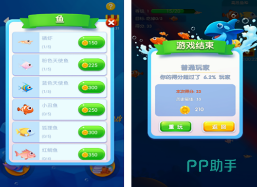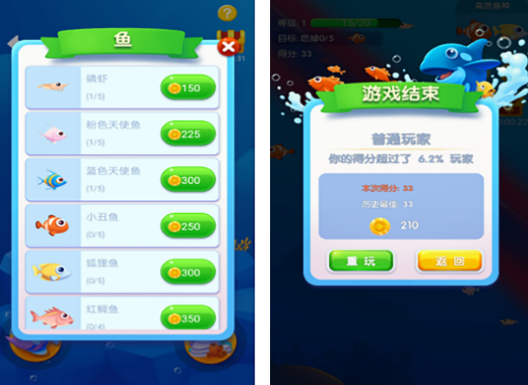 进入了拥有着超多漂亮鱼儿的海底世界以后,想要完成任务并获得金币奖励的话,就需要在玩的过程当中点击屏幕,合理的移动游戏当中的小鱼。虽然最初的时候自己只是一个普通的小鱼儿,但是却能够利用吃比自己体型还要小的小鱼,甚至是虾等海底生物体型不断的增长。有大家比较熟悉的玩法,还可以通过不断解锁各种鱼的方式开启挑战。