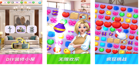这是款可以联机挑战的三消+装修类型的游戏,模拟装修的玩法加上休闲解压的设定耐玩性不错,消除节奏超快可以轻松获取装修类型的资源道具,全民一起玩的装修体验代入感也是不错的,各种各样的梦幻联动玩法参与感不错,形形色色的装饰道具也足以让你的家园显得更加温馨哟。