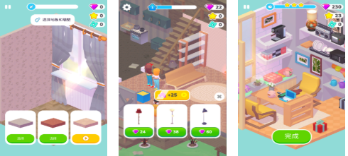 小家设计也是款加入了三消模式和装修玩法的单机小游戏,游戏画面极为绚丽也有着多线性的任务可以完成,DIY打造自己家园的游戏玩法可玩性不错,疯狂好玩的挑战任务加持也为游戏润色不少,大量好玩的随机事件出现参与感真心不错,游戏整体的解压感十足且模式多样可玩性也不差。