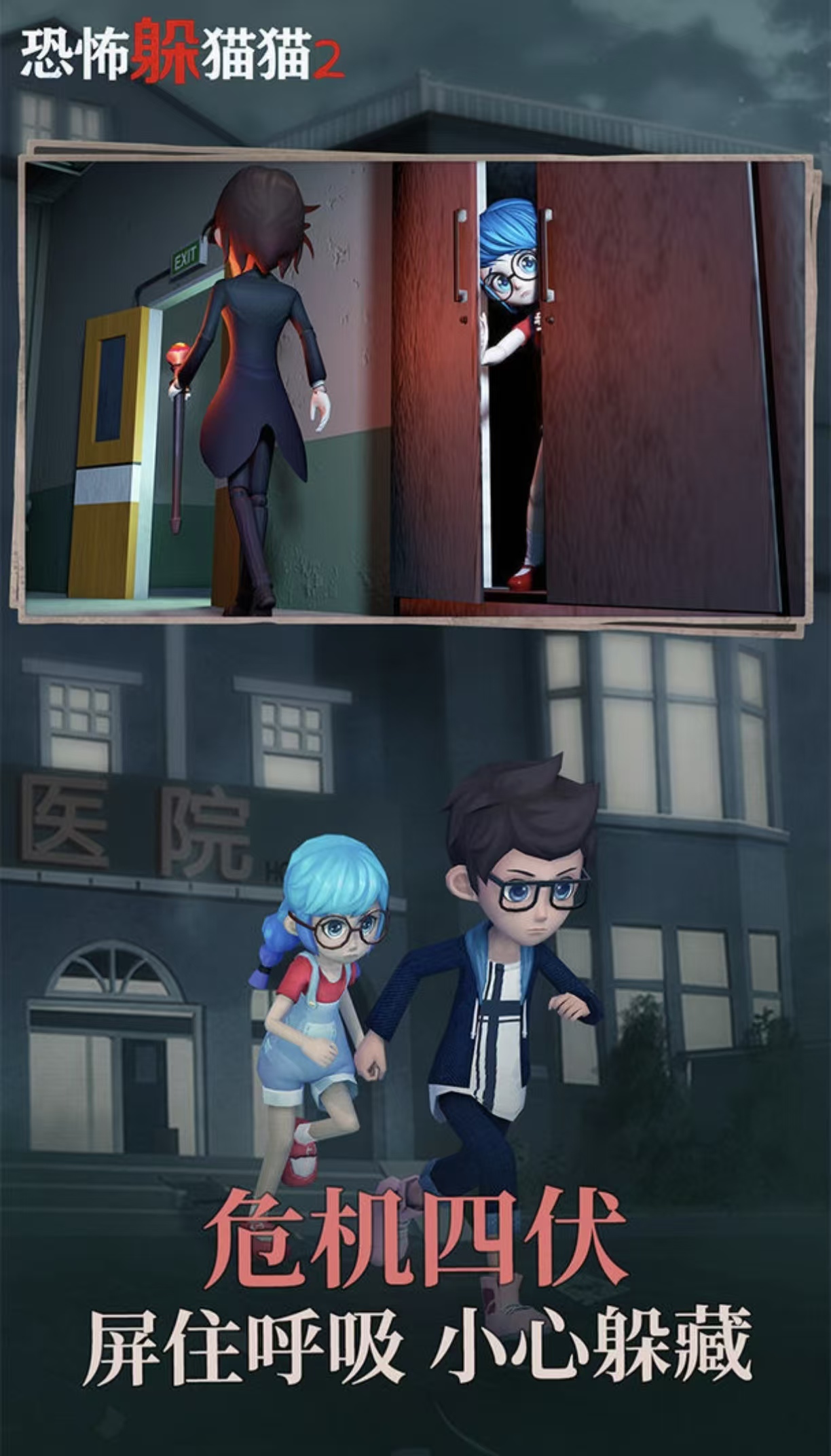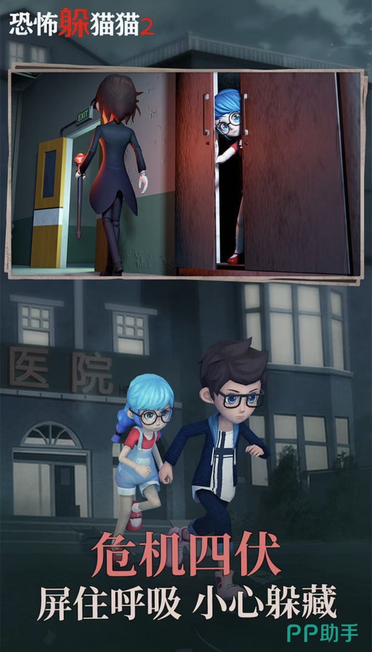 《恐怖躲猫猫2》角色有两种不同的身份选择,进入场景内可以不断寻找宝藏,获得宝石并且顺利的逃生,或者是选择寻找这里的躲藏者,不断的攻击他们完成胜利。玩家可以选择不同的角色和地图,每种角色都很有自己的特色,通过挑战会解锁更多的场景。这里是一些阴森恐怖的氛围,是一些比较昏暗的环境,还加入了很多的旁白对话。