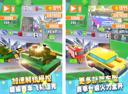 以像素街机风格所打造的赛车游戏,既能够帮助大家进入纯粹的世界里,同时也能够让玩家控制着里面的赛车,通过横冲直撞,拒绝其他车辆的方式就可以帮助大家获得更高的分数,游戏所涵盖的车辆类型非常的丰富,无论是卡通类型的各种汽车或者是飞机坦克应有尽有,可以通过解锁各种车型的方式,开启火力全开的战斗。