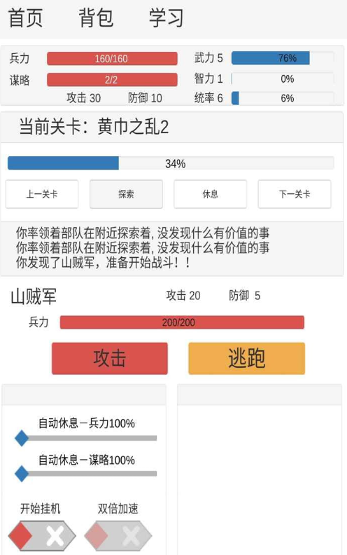 这款以三国为背景的文字类游戏,能挑选三国里的各路武将参与对战,游戏里的内容形式丰富多样,整体的游玩体验很充实,结合了有新意的文字表现形式,玩起来轻松又有意思。游戏里能给武将提升各项能力,前期游玩时要抓紧提升等级,尽快确定好要搭配的装备,这样能让后续的对战更顺利,整体的游戏节奏也能更好把控。
