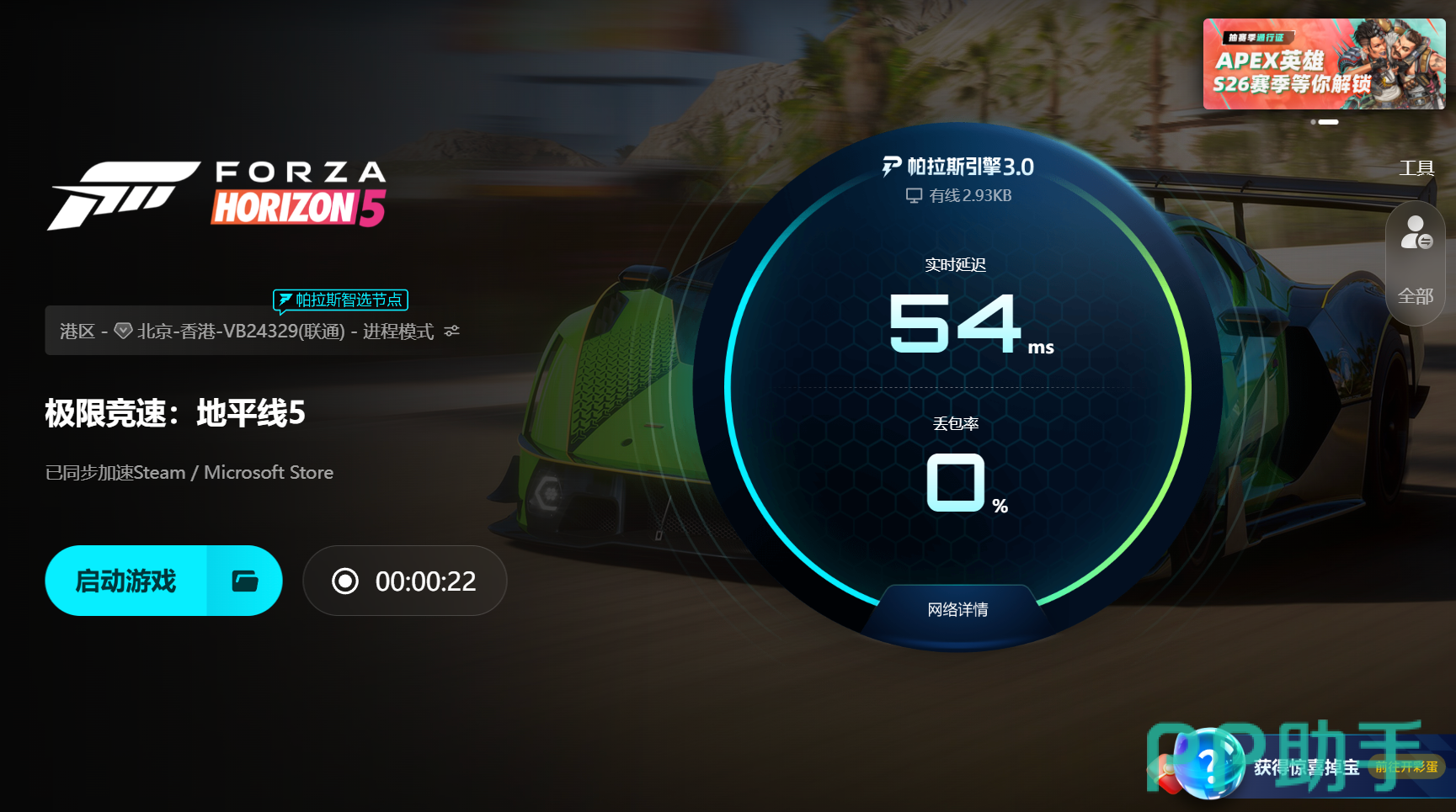 当前biubiu加速器已全面升级至帕拉斯引擎3.0架构。该引擎具备毫秒级网络健康度扫描能力,可实时评估各节点延迟、丢包率与抖动值,并基于动态权重算法自动切换最优传输路径。当检测到主链路波动时,系统将在200ms内完成无缝切换,显著降低因网络瞬断引发的加载失败概率。相比传统静态路由方案,帕拉斯引擎3.0更适配《极限竞速:地平线5》所需的高吞吐、低抖动网络特性。此外,FPS职业冠军选手Aixleft以体验官身份深度参与调优工作,将职业赛事中对<15ms端到端延迟与99.99%连接稳定率的严苛标准,融入底层协议栈设计,进一步提升关键帧同步精度。