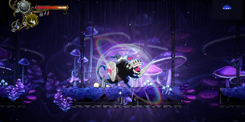 本作在结构设计上实现了类银河战士恶魔城(Metroidvania)地图叙事与轻度Roguelite成长机制的有机融合。玩家操控一位受神秘诅咒之帽影响的女巫,在由程序动态生成的迷宫世界中展开探索。其标志性系统为“凭依机制”:主角本体即为那顶具备诅咒力量的帽子,可附身于被击败的特定敌人尸体之上,即时转换为对应敌人的外形,并继承其专属技能与战斗逻辑。每一次通关路径、遭遇配置、法术组合、奇物获取均存在差异,确保重复游玩具备高度新鲜感与策略延展性。