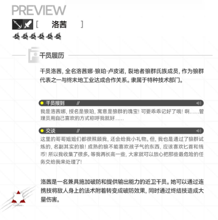 《明日方舟》全新版本“新潮起故渊离”正式上线,备受期待的原创干员洛茜同步实装。作为狼卫的亲妹妹、狼群中备受宠爱的核心成员,洛茜以高机动性与强节奏感著称,技能体系深度融合“破防”与“灼热”双重机制,具备显著的爆发输出能力与战术协同价值。本文将围绕其技能逻辑、机制联动及实战定位展开详细解析。