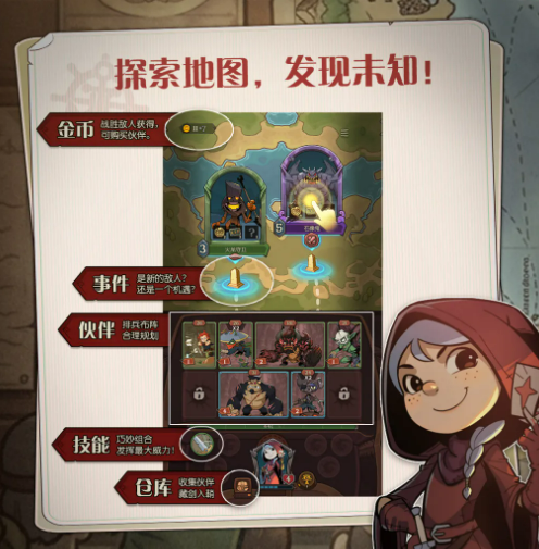 秘宝对决采用双轨并行结构:一为自主驱动的地图冒险,二为非实时的真人对抗系统。玩家从初始营火出发,在六边形网格地图中自由选择行进路径,遭遇事件、招募伙伴、强化阵容;另一条主线则指向七枚散落于地图各处的奖杯——集齐即获胜。整个过程无需网络对战压力,所有PVP交锋均以录像回放形式呈现,强调策略预判与阵容克制。