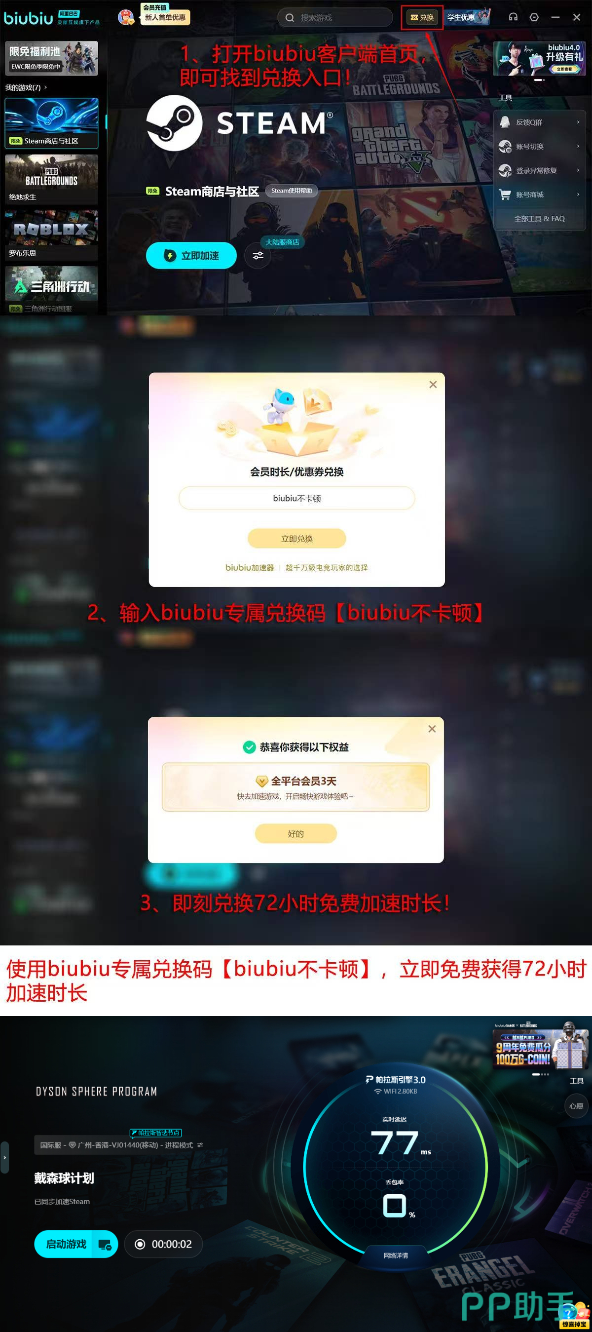 现在正是开启流畅星海征程的最佳时机,新用户注册biubiu加速器,即刻尊享24小时全功能免费试用,输入【biubiu不卡顿】,即可再获72小时的额外免费加速时长,双倍福利叠加,总计长达96小时的免费加速体验,足以让你深入体验。