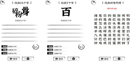主打创新性字谜设计,融合经典灯谜逻辑与现代脑筋急转弯表达方式,采用极简黑白视觉风格降低干扰,突出文字本身的信息密度。题库总量达10万组以上,包含常用汉字、易混淆字组、网络新词及方言俚语等多元语料,每关设定均有明确逻辑锚点,强调思维跳跃与常识联想能力。