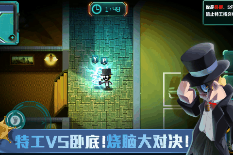 本作融合非对称对抗机制与角色推理逻辑,构建出独特的“间谍vs特工”动态博弈场。玩家可选择扮演潜伏者或追击者,在同一地图中展开高强度心理周旋。角色能力设计摒弃传统数值堆砌,转而强调行为逻辑差异——间谍依赖环境交互制造误导,特工则依靠线索串联锁定目标。全程无武器系统,胜负完全取决于观察力、话术引导与时机把控能力。