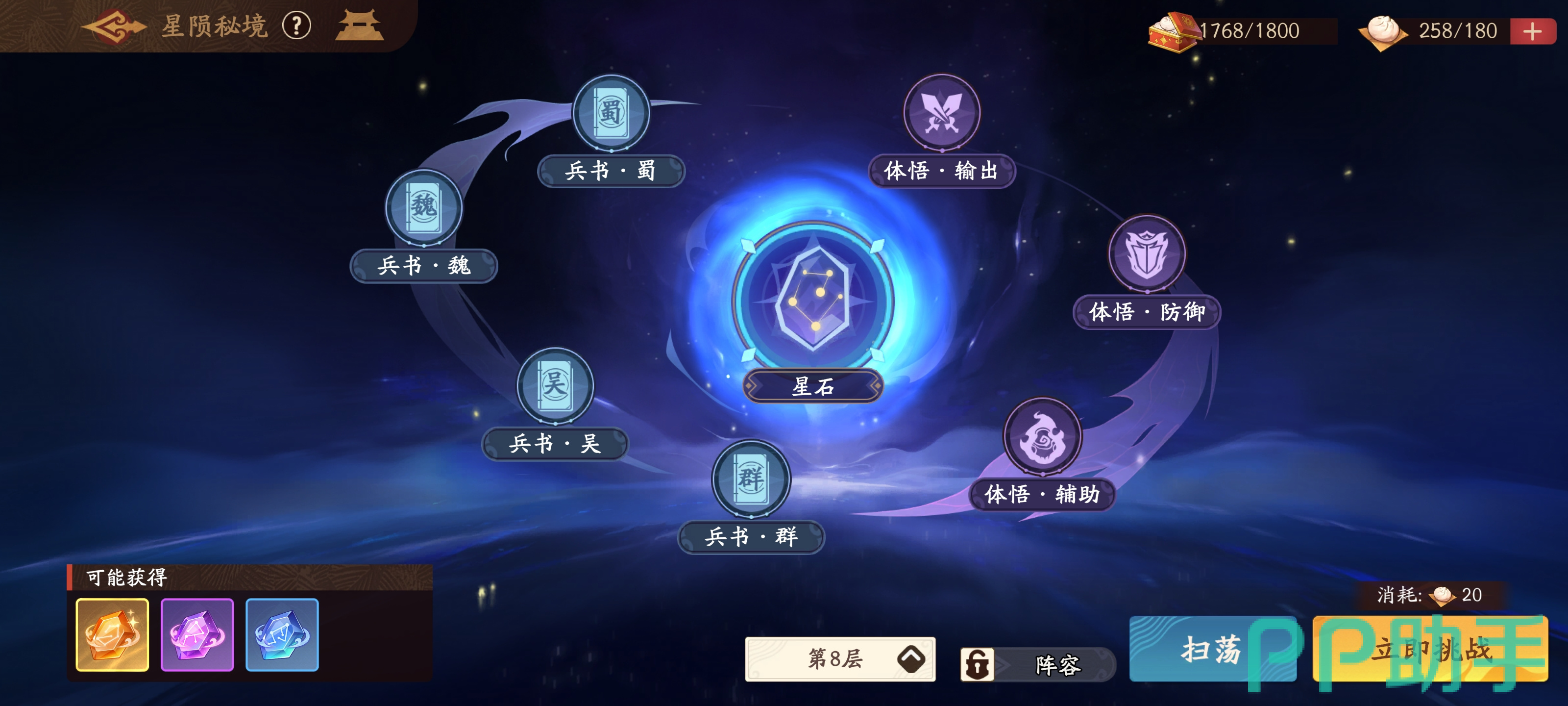 游戏采用标准回合制策略框架,但通过多层养成系统实现差异化体验。角色等级提升依赖经验书,可通过主线任务稳定获取;达20级与30级时开放突破节点,解锁技能等级上限,所需材料主要出自星陨秘境及主线通关奖励。区别于传统数值堆叠,“锦囊”系统构成玩法重心之一——它不仅是属性加成来源,更引入机制类效果,影响战局节奏与战术组合。副本挑战与四圣塔是锦囊获取的主要途径。