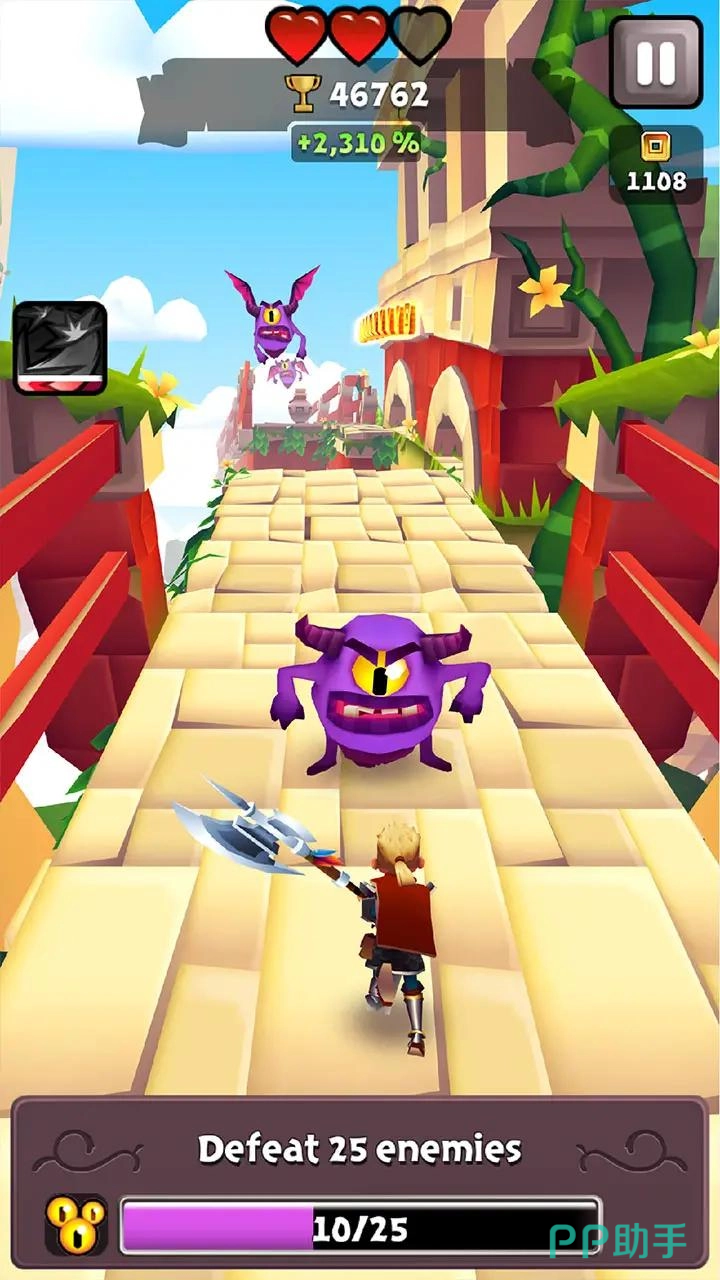 塑造原创萌系英雄布瑞姆,融合跑酷闯关、轻度战斗及角色成长体系。通过精准滑动完成跳跃、滑行、翻滚等核心动作,规避动态障碍与巡逻敌人;升级系统支持技能强化与外观定制,助力玩家在高速推进中稳定输出高分表现。