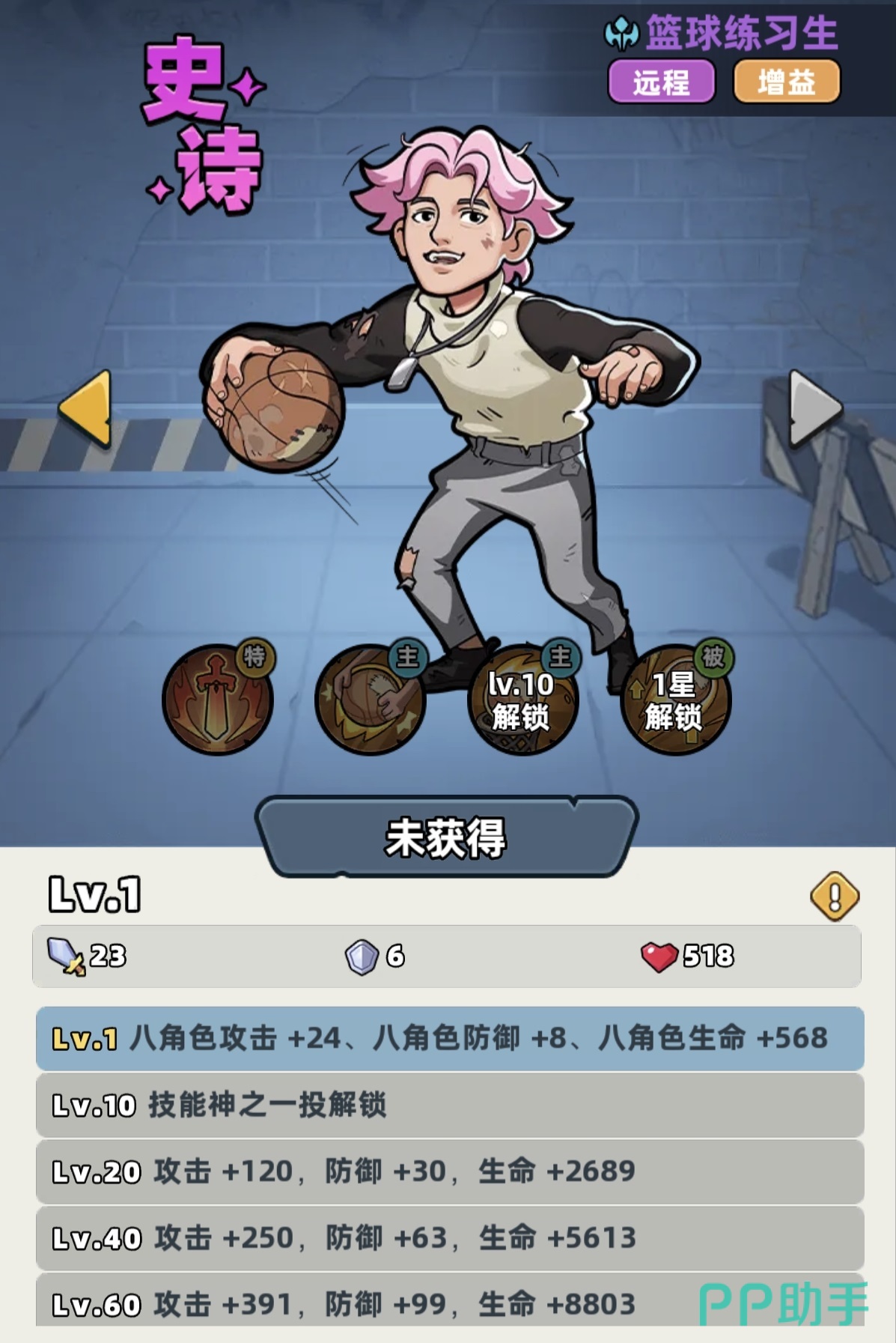 在阵容构建层面,篮球练习生具备出色的阶段延展性。前期可作为主C,搭配变异人(坦克)、空姐(治疗)及其他单体输出,快速推进主线关卡;中期无需替换,转为功能型辅助,持续提供全队攻击增幅,支撑整体DPS上限;后期若引入神话级主C,他仍可稳固担任副C或增益核心,配合厨神(治疗位升级)、学生妹(功能输出)等角色,组成高性价比平民毕业队。其史诗品质带来的低获取门槛与零氪友好养成路径,使得角色满命、技能全满状态极易达成,实战表现远超品质预期。