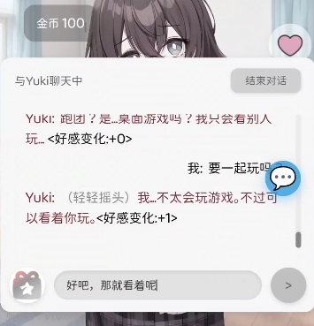 游戏以细腻叙事串联生活化场景,依托模型实时分析玩家选择,动态调整Yuki的情绪反馈与事件走向。其中嵌入多个独立设计的小游戏模块,增强日常互动的趣味性与策略性:
