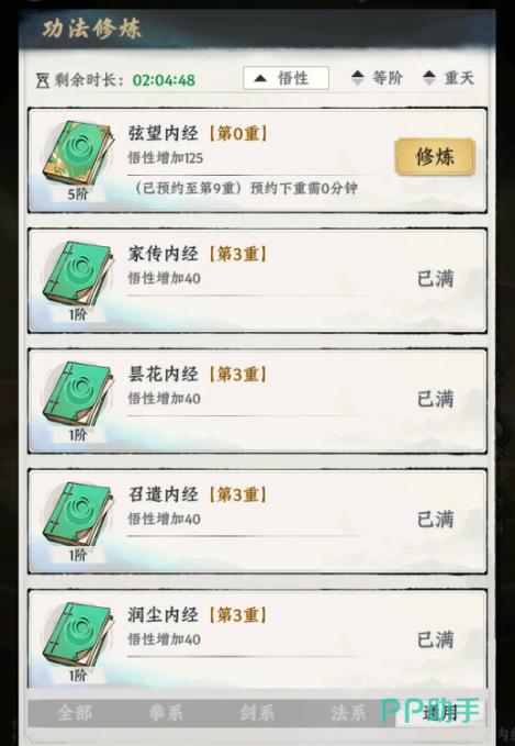 功法系统独立于神通体系,支持无限叠加研习。每本功法均提供固定的基础属性加成,玩家需通过持续修炼提升其层数,层数越高,对应属性增益越显著。值得注意的是,功法无需装备操作,完成获取与修炼后即实时转化为角色面板属性,实现无缝成长。