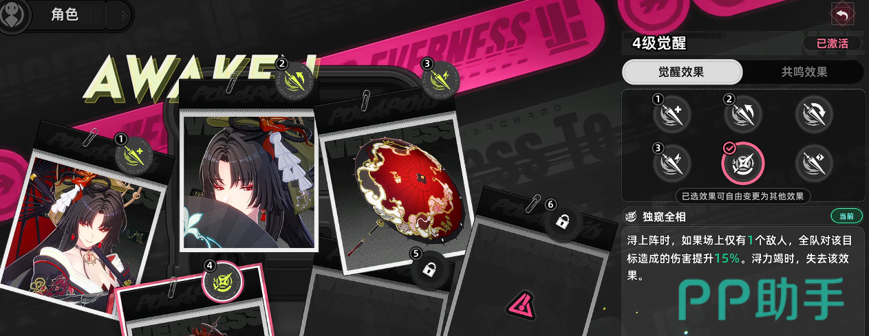 其次是觉醒系统,该机制融合命座与天赋逻辑,最大亮点在于支持局外自由切换不同觉醒配置。多觉醒角色可叠加触发协同效应,配合角色间技能联动形成“环合”机制,显著提升队伍整体输出倍率。