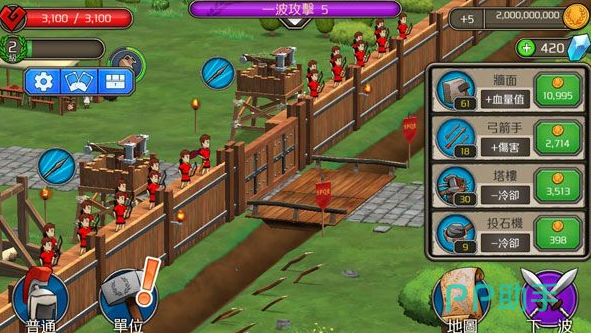 采用鲜明涂鸦风格美术表现,职业体系覆盖雇佣兵、农夫、弓箭手及矮人步枪手等差异化角色,其中矮人步枪手拥有突出的远程爆发能力。建筑系统提供木墙、石墙、铁墙三类基础建材,适配不同阶段发展需求——铁墙侧重长期养成与耐久成长。防御模块包含空间塔与战斗塔两类功能性建筑,支持玩家自主构建立体化防御网络,兼顾视觉表现与战术纵深。