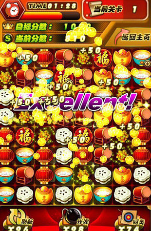 这是一款专为节庆氛围定制的消除类益智游戏。核心机制简洁直观:滑动调换相邻图标位置,使三个或以上相同春节元素(如福字、灯笼、饺子、红包等)连成一线即可消除。音效清脆悦耳,消除成功时伴有动态奖励掉落反馈。操作门槛低,适配全年龄段用户——老人可快速上手,儿童能专注练习,全家共玩无障碍。在轻松节奏中自然融入年俗符号,营造浓厚节日情绪。