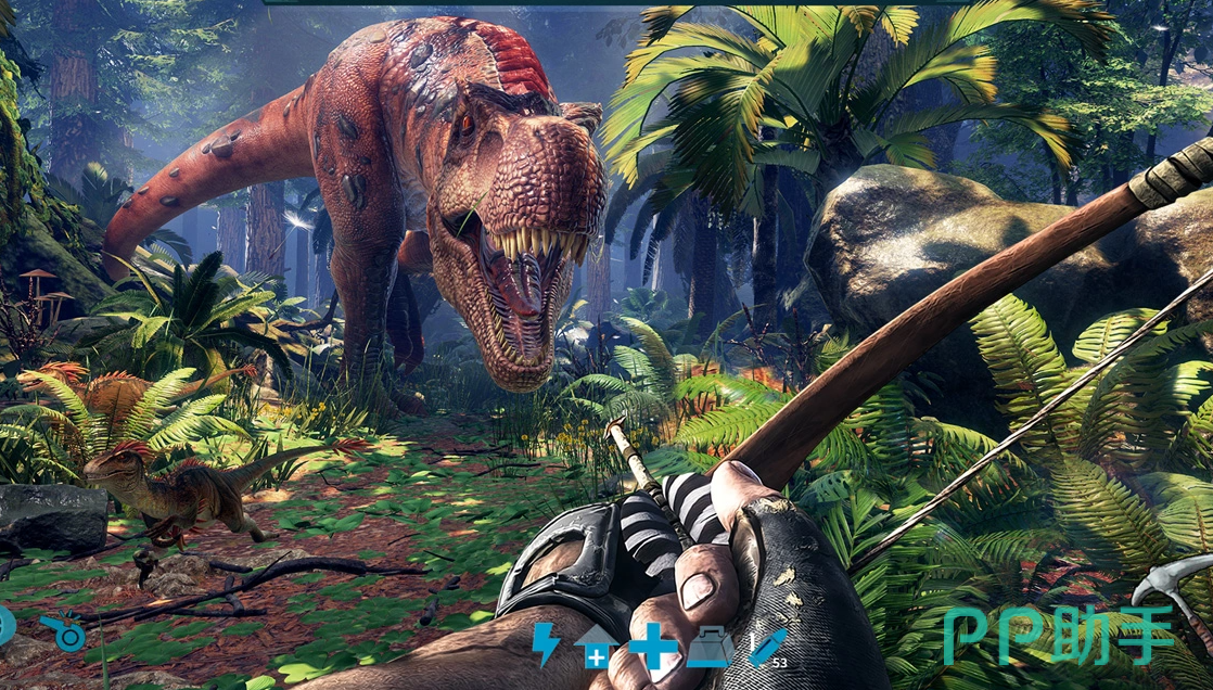 游戏采用深度模拟生存系统,角色状态持续动态变化,包括饥饿值、水分值、体温、眩晕度、氧气量等多重维度。玩家必须实时管理资源采集节奏,从原始石器制作、水源净化,到木结构建筑搭建、火源维护,每项操作均直接影响存活性。野外威胁不仅来自掠食性恐龙,还包括极端天气、毒沼、辐射区等环境变量,考验玩家的综合决策能力。