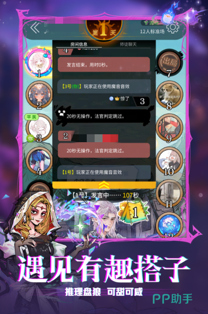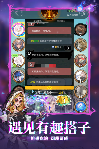 本作构建多身份对抗生态,涵盖警察、狼人、僵尸、平民等角色。每轮经历夜晚行动(狼人击杀、神职查验)与白天辩论投票两大阶段,胜负取决于任一阵营存活人数归零。角色技能差异化设计增强策略深度,配合全程语音支持,使推理过程更具沉浸感与竞技张力。