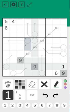 《箭头数独》将方向逻辑深度融入解题流程:每个箭头指向的单元格数字之和等于箭尾所在格数值,且所有箭头路径构成连续链式约束。在此基础上叠加“拼图式宫格”设计——非标准几何形状的宫域边界随关卡动态变化,迫使玩家同步处理空间识别与数值推演双重任务,显著提升认知负荷阈值。