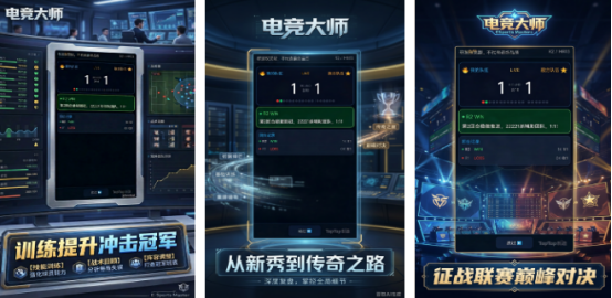 以剧情驱动方式呈现电竞从业者成长轨迹,主角从普通爱好者起步,经系统性个人训练、线下战队组建、区域联赛突围,最终登上世界冠军领奖台。过程中需完成技能树加点、心理素质培养、团队协作任务及战术复盘等模块化成长任务,同步开放选手招募系统,支持组建跨地域、多项目的全能型职业战队。