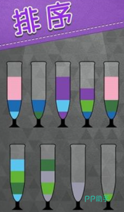 本作采用液体分装解谜机制,玩家需在多个固定容量的容器间倒换不同颜色液体,目标是使每个容器内仅保留单一纯色。所有容器达成统一配色后即视为通关。游戏无时间压力,强调策略性规划与空间预判能力,每一步倾倒操作都需兼顾容量限制与后续路径安排。