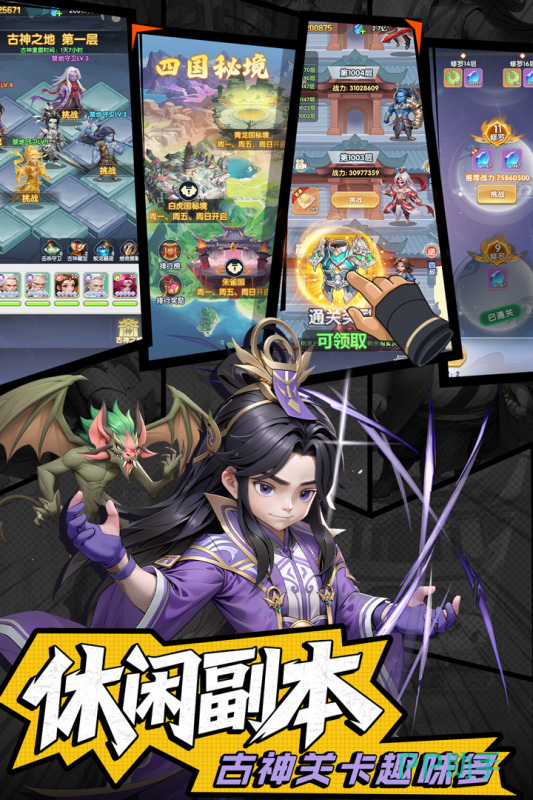 以国漫美学为基底的策略卡牌类仙侠手游。采用“仙—妖—人”三界阵营架构,每阵营含12名可收集角色,通过羁绊激活、属性克制、阵型站位实现深度策略组合。技能释放具备帧动画特效与音画同步反馈,大招演出时长控制在2.8秒内以保障操作流畅性。资源养成路径明确,无强制付费节点,平衡性经2000+场次PVP数据验证。