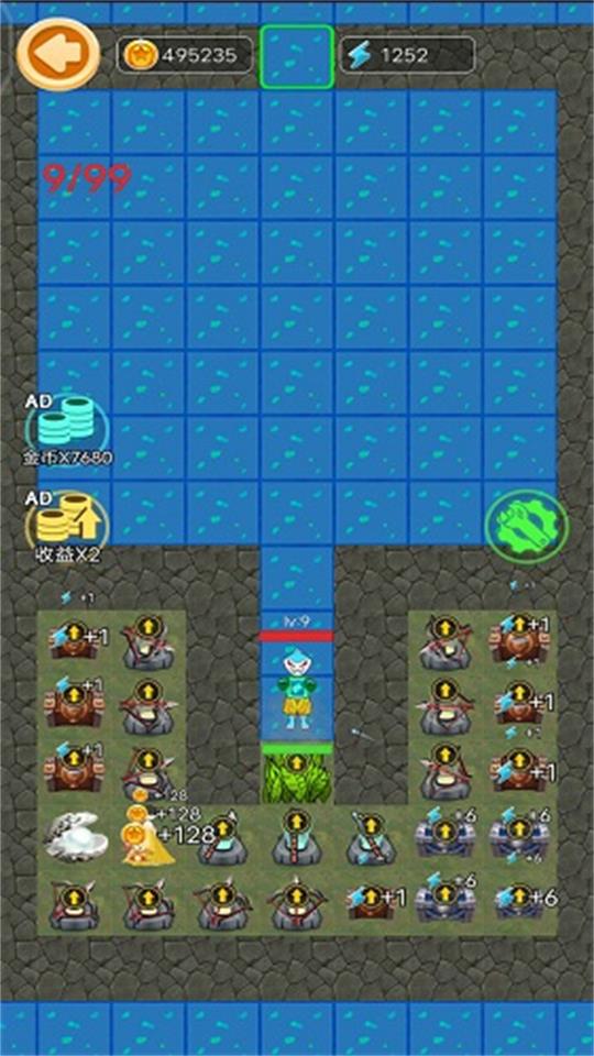 以海岛生态为舞台,采用网格化地图架构,水域与陆地单元按规则分布。开局仅开放有限格子用于部署防御塔,随击杀海怪逐步扩张领土范围。敌方单位沿固定路径推进,其移动特性与攻击模式存在明显克制关系,需结合实时情报调整炮塔类型与站位,实现动态防御策略。