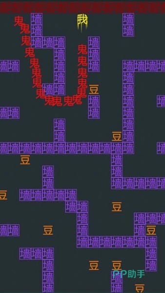 本作主打创意解谜与轻策略结合,关卡采用高度风格化的文字符号系统——敌人、障碍物、收集物均以独特字形呈现。玩家需通过视觉辨识与逻辑推演,规划最优路径,在有限视野中完成金豆采集任务。每关布局打破常规空间认知,谜题设计兼具趣味性与思维挑战性。