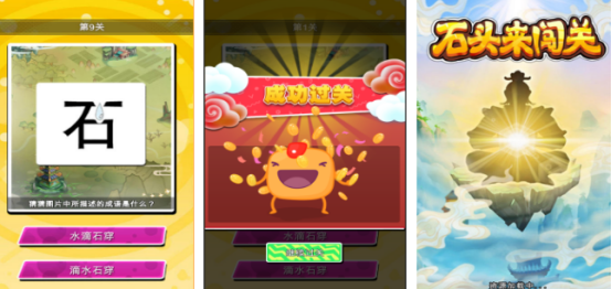 以汉字文化为内核的益智闯关产品,题库覆盖《通用规范汉字表》全部8105字,成语关卡达2168道,其中生僻成语占比23.7%(如“珷玞乱玉”“碔砆混玉”)。独创“文字具象化”机制,将成语语义转化为可交互石阵布局,每关解题逻辑需调用至少2个传统文化知识点。