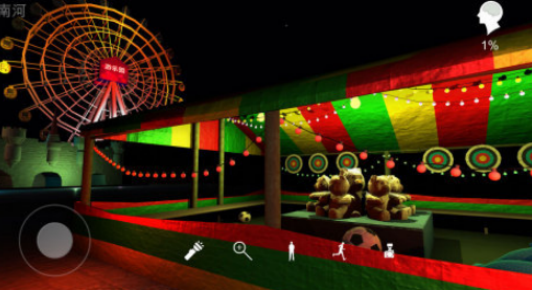 以第一人称视角展开密室逃脱式冒险,设定于一座深夜封闭的诡异游乐园。场景包含锈蚀的鬼屋通道、镜面迷宫、停运的过山车轨道等高压迫感空间,配合环境音效与渐进式BGM营造窒息感。玩家需在限定时间内搜寻道具、破解机械机关、关联时间线证据,最终揭开乐园背后隐藏的非自然实验事件。