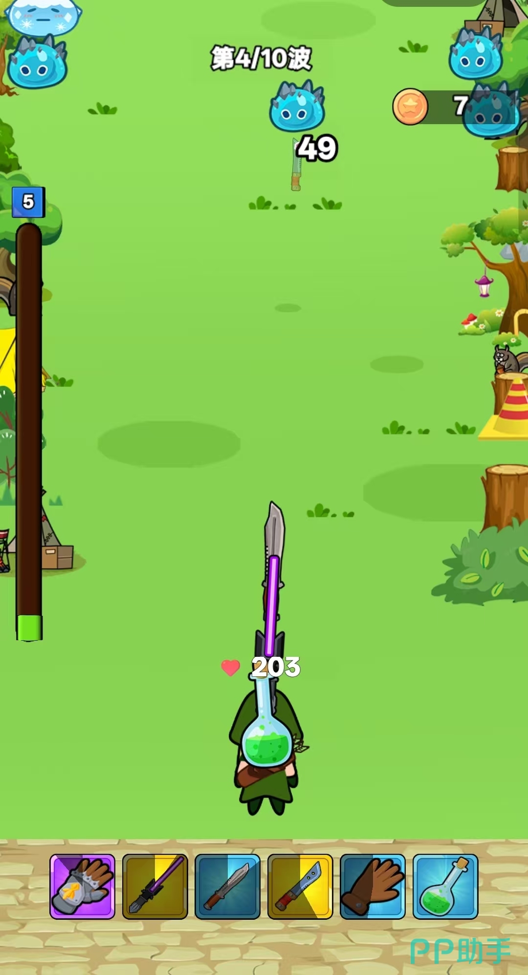 区别于传统近战设定,本作主打法师职业远程制胜体验。玩家在固定格子区域内合成升级武器道具(含手套、短刀、弓箭等),同步进行布防与战斗。面对持续涌来的魔兽波次,需兼顾合成效率与战力分配,实现“边造边打”的动态平衡,策略维度丰富,成长曲线明确。