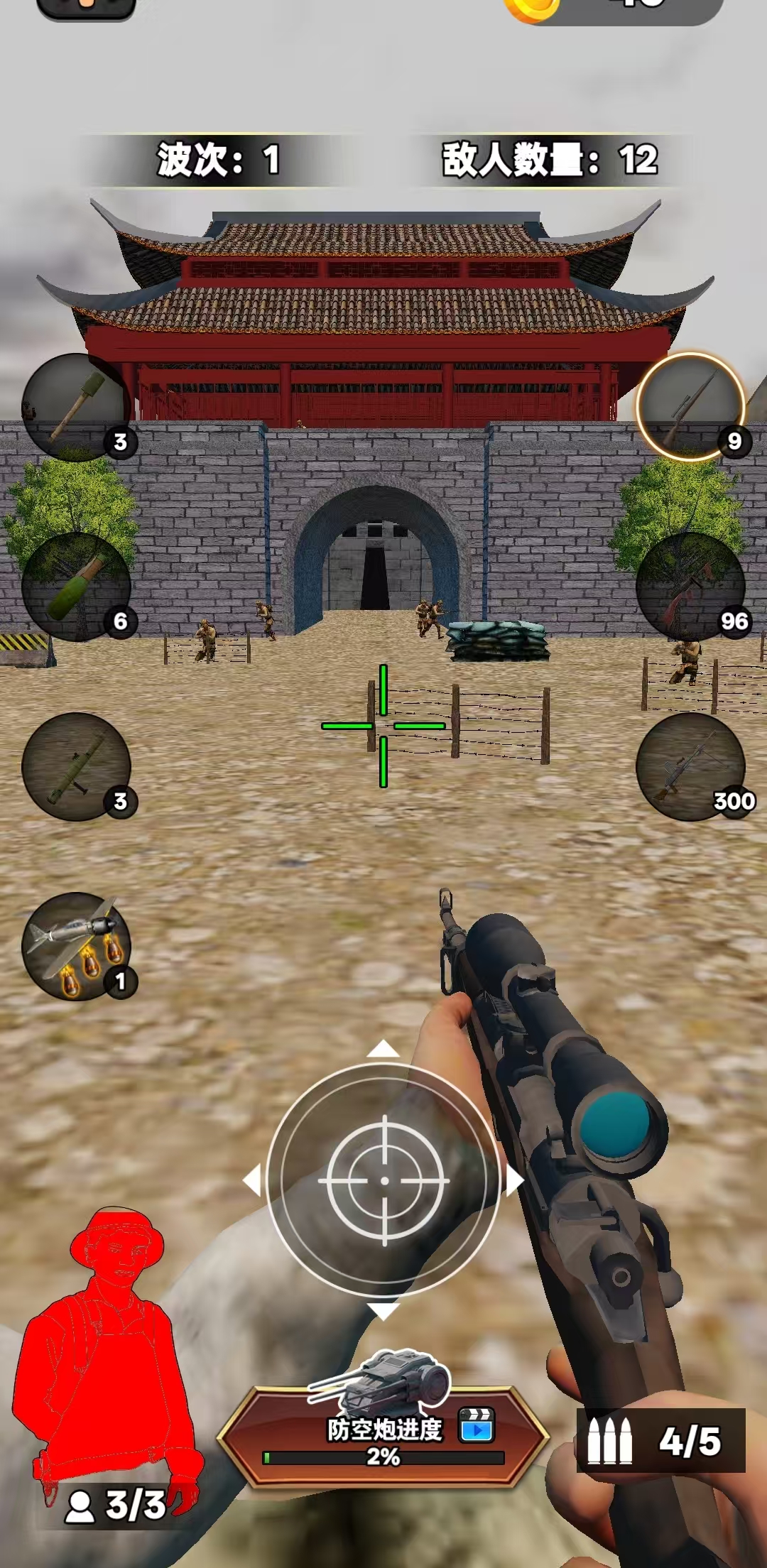 这是一款强调战术预判与精准打击的狙击向动作游戏。玩家化身孤胆守卫者,在敌军城门前部署伏击点,依据阵型变化择机开火。生命值有限,需合理搭配高伤害武器,并实时管理弹药补给与走位规避反击,考验临场决策与射击稳定性。