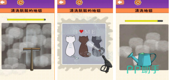 聚焦地毯专项清洁挑战,模拟真实污渍类型——如干果皮、纸屑、毛发、黏着污迹等。玩家需灵活切换吸尘、刮擦、喷淋等工具组合,应对不同顽固污渍。随着进度推进,可购置更高效设备并升级性能参数,提升清洁效率与精准度。整体节奏张弛有度,兼具策略性与解压效果。
