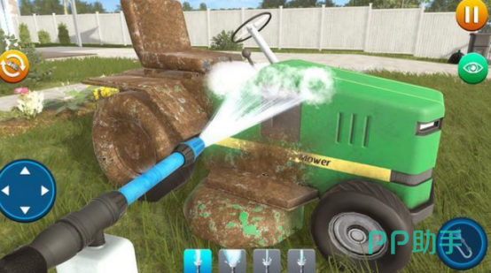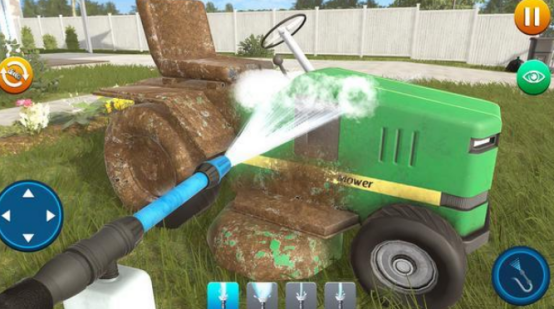 采用全3D建模技术呈现高精度清洗对象,涵盖户外雕塑、越野车、庭院设施等大型实体。玩家需按步骤执行预洗、主洗、冲淋、打蜡全流程,合理调配高压水枪压力值、刷具硬度、清洁剂浓度等参数,达成深层去污与表面光洁双重目标。车辆清洁模块支持自定义打蜡颜色与光泽度调节,增强个性化体验。