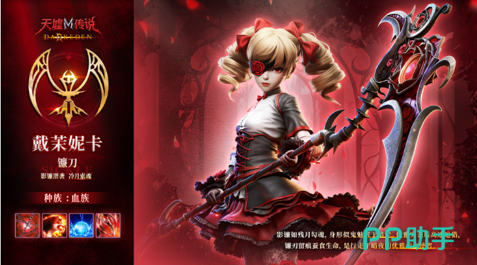 血族近战持续输出职业黛茉妮卡以镰刀为武器,主打高速连击与印记叠加。每次攻击可触发“折磨印记”,随层数累积提升真实伤害比例,并在满层时触发高额暴击斩杀。其移动中施法机制允许在高机动状态下维持输出,PVP中收割残血目标效率极佳。该职业需注重暴击率与暴击伤害协同堆叠,技能循环依赖流畅连段衔接。