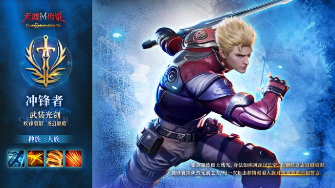人族阵营首推职业为冲锋者,定位为高机动近战爆发型战士。其核心优势在于瞬时位移能力与多段突进斩击,可在团战中迅速切入敌方后排。完成天赋赋能后,基础斩击伤害显著提升,并具备短距追击判定。加点策略建议主堆力量属性,以强化生存与破防能力;副本实战中,该职业承担主力输出与战术切入双重职能,对操作节奏把控要求较高。