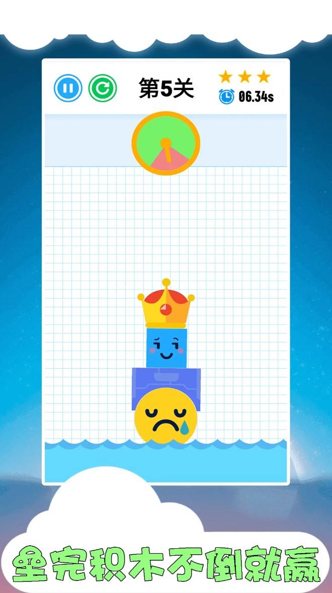 设定限时通关机制,每关积木数量与倒计时长度动态变化。玩家通过拖拽操作完成定位放置,过程中需持续监控整体结构倾斜度与接触面压力分布。80余关卡构成渐进式能力培养路径,从基础堆叠延伸至悬挑结构、不对称构型等进阶形态,考验实时决策与动态平衡掌控力。